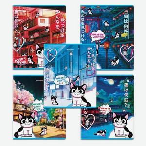Тетради Brauberg Дэк: Аниме Кот , А5, в клетку, матовая ламинация, лак, 48 листов, 5 шт (404671)