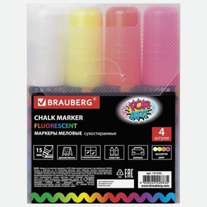Набор меловых маркеров Brauberg Pop-Art, стираемых, для гладких поверхностей, 15 мм, 4 цвета (151545)