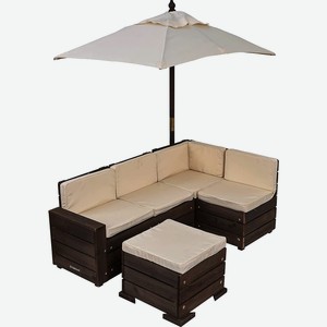Детская садовая мебель KIDKRAFT секционный диван + пуф-стол + зонт, бежевая/коричневая (20305_KE)