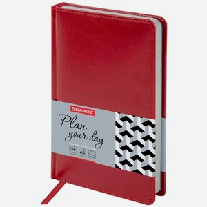 Ежедневник Brauberg Rainbow, недатированный, А5, 138х213 мм, под кожу, 136 листов, красный (111667)