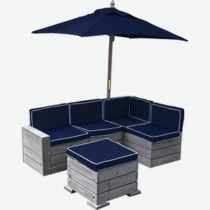 Детская садовая мебель KIDKRAFT секционный диван + пуф-стол + зонт, серая/синяя (20177_KE)
