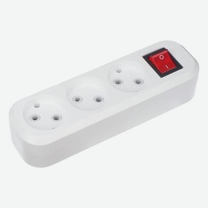 Розеточная колодка Rexant 3 гнезда, без заземления, с выключателем, белая (11-8705)