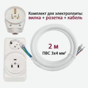 Комплект для подключения электроплиты DORI вилка + комби розетка открытой установки + кабель 2 м (15880)