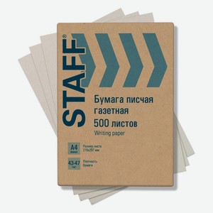 Бумага писчая Staff газетная, А4, 43-47 г/м2, 500 листов (115342)
