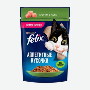 Влажный корм для взрослых кошек Аппетитные кусочки , FELIX, с кроликом в желе, 75 г