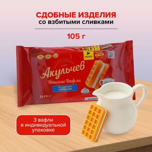 Сдобные изделия Венские вафли , Акульчев, со взбитыми сливками, 105 г