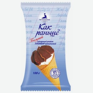 Мороженое Как раньше пломбир ванильный в шоколадной глазури рожок, 100 г
