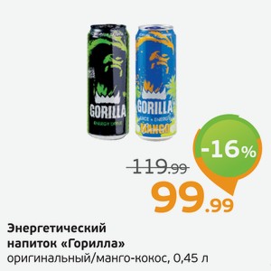 Энергетический напиток Горилла оригинальный/манго-кокос, 0,45 л