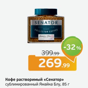 Кофе растворимый Сенатор сублимированный, Ямайка Блу, 85 г