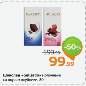 Шоколад «Gallardo» молочный/ со вкусом клубники, 80 г