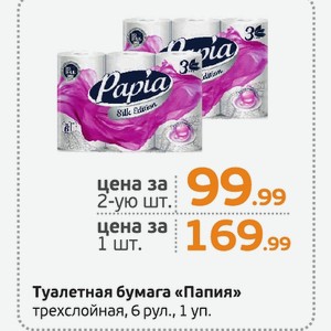 Туалетная бумага «Папия» трехслойная, 6 рул. , 1 уп.