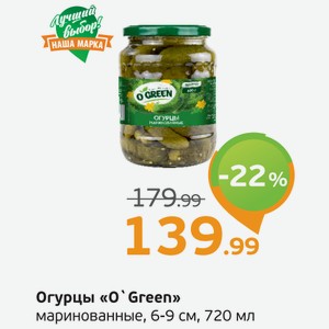 Огурцы О Green маринованные, 6-9 см, 720 мл