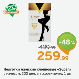 Колготки женские хлопковые Super с начесом, 300 ден, в ассортименте, 1 шт.