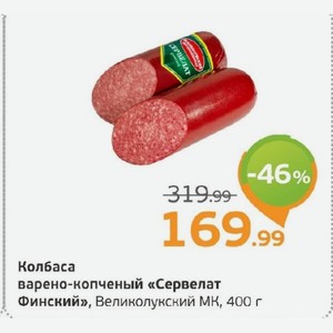 Колбаса варено-копченый «Сервелат Финский», Великолукский МК, 400 г
