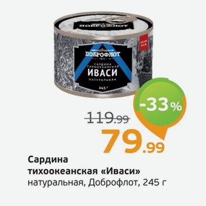 Сардина тихоокеанская Иваси натуральная, Доброфлот, 245 г