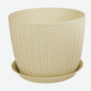 Кашпо Вязание d180мм с поддоном М 3121 белый ротанг
