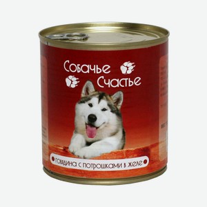 Консервы мясные Собачье Счастье Говядина с потрошками в желе 750г