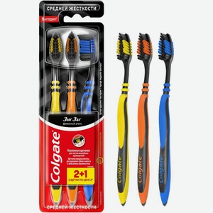 Зубная щетка Colgate Зиг Заг Древесный уголь средней жесткости промоупаковка 2+1