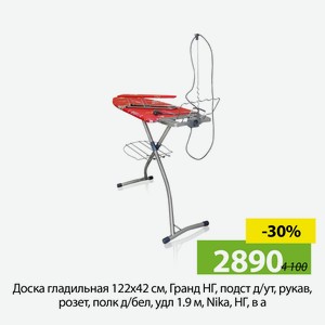 Доска гладильная 122х42 см, Гранд НГ, подст д/ут, рукав, розет, полк д/бел, удл 1.9 м, Nika, НГ, в а