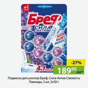 Подвеска для унитаза Бреф, Сила-Актив Свежесть Лаванды, 2 шт, 2х50 г