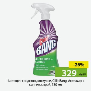 Чистящее средство для кухни, Cillit Bang, Антижир + сияние, спрей, 750 мл