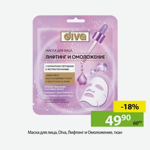 Маска для лица, Diva, Лифтинг и Омоложение, ткан