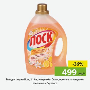 Гель для стирки Лоск, 2.19 л, для цв и бел белья, Ароматерапия цветок апельсина и бергамот