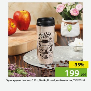 Термокружка пластик, 0.38 л, Daniks, Кофе-2, колба пластик, YYCF001-8