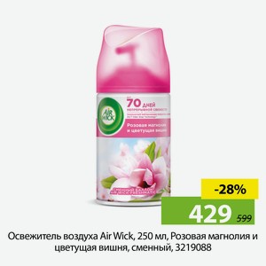 Освежитель воздуха Air Wick, 250 мл, Розовая магнолия и цветущая вишня, сменный, 3219088
