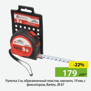 Рулетка 5 м, обрезиненный пластик, магнитн, 19 мм, с фиксатором, Bartex, JB 87
