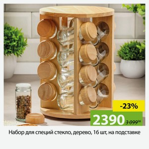 Набор для специй стекло, дерево, 16 шт, на подставке, беж, Y3-1138