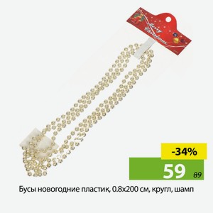 Бусы новогодние пластик, 0.8х200 см, кругл, шамп