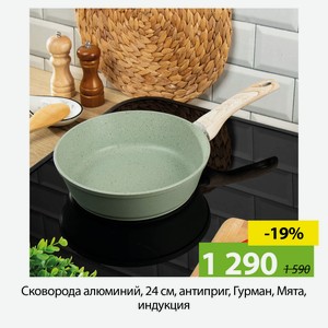 Сковорода алюминий, 24 см, антиприг, Гурман, Мята, ГМ2401МЛ, индукц