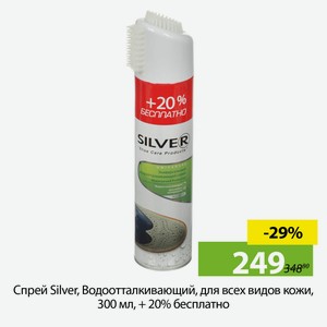 Спрей Silver, Водоотталкивающий, для всех видов кожи, 300 мл, + 20% бесплатно, SI3201-00/SI2201-00