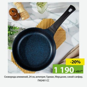 Сковорода алюминий, 24 см, антиприг, Гурман, Мерцание, синий сапфир, ГМ2401 СС