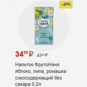 Напиток ФрутоНяня яблоко, липа, ромашка сокосодержащий без сахара 0.2л