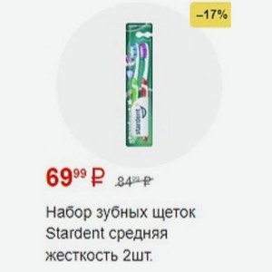 Набор зубных щеток Stardent средняя жесткость 2шт.