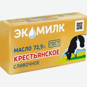 Масло Экомилк Крестьянское сливочное 72.5% БЗМЖ 160г