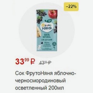 Сок ФрутоНяня яблочно-черносмородиновый осветленный 200мл