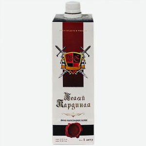 Вино белое Белый Кардинал полусладкое столовое 12%, 1л