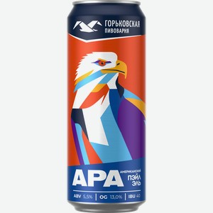 Пиво светлое ГОРЬКОВСКАЯ ПИВОВАРНЯ American Pale Ale нефильтрованное неосветленное пастеризованное 5,5%, 0,45л