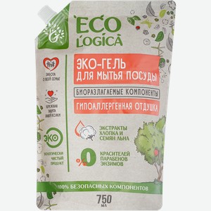 Гель для мытья посуды ECOLOGICA Экстракты хлопка и семян льна, 750мл