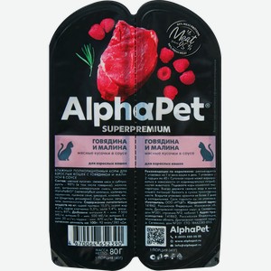 Корм для кошек ALPHAPET Superpemium с говядиной и малиной в соусе, 80г