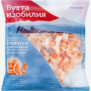 Креветки Королевские варено-мороженые БУХТА ИЗОБИЛИЯ очищенные, 300г