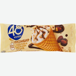 Мороженое 48 КОПЕЕК с глазурью и миндалем, без змж, вафельный рожок, 200мл