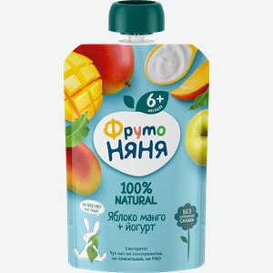 Пюре фруктово-йогуртное ФРУТОНЯНЯ Яблоко, манго, с йогуртом, с 6 месяцев, 90г