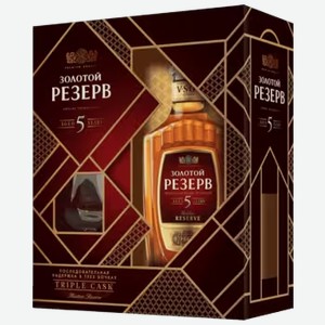 Коньяк Золотой Резерв 5 лет 0,5 л в подарочной упаковке + бокал
