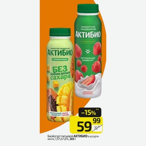 Биойогурт питьевой АКТИБИО в ассортименте, 1,5/1,6/1,8%, 260 г