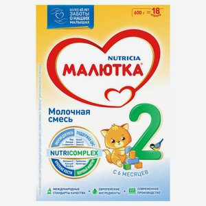 Смесь сухая молочная «Малютка» 2 с 6 мес. БЗМЖ, 600 г