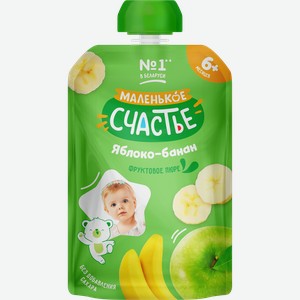 Пюре фруктовое МАЛЕНЬКОЕ СЧАСТЬЕ Яблоко-Банан, с 6 месяцев, 90г